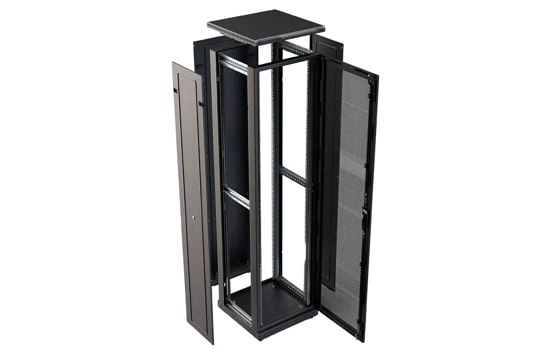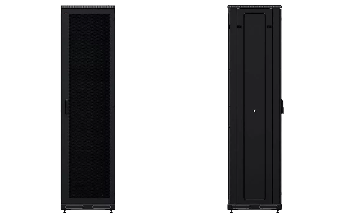 За счет элементов крепления каркас шкафа имеет повышенную жесткость. Распределенная вертикальная нагрузка до 800 кг. Стандартно шкаф комплектуется: передней дверью, боковыми и задней стенками с замками.