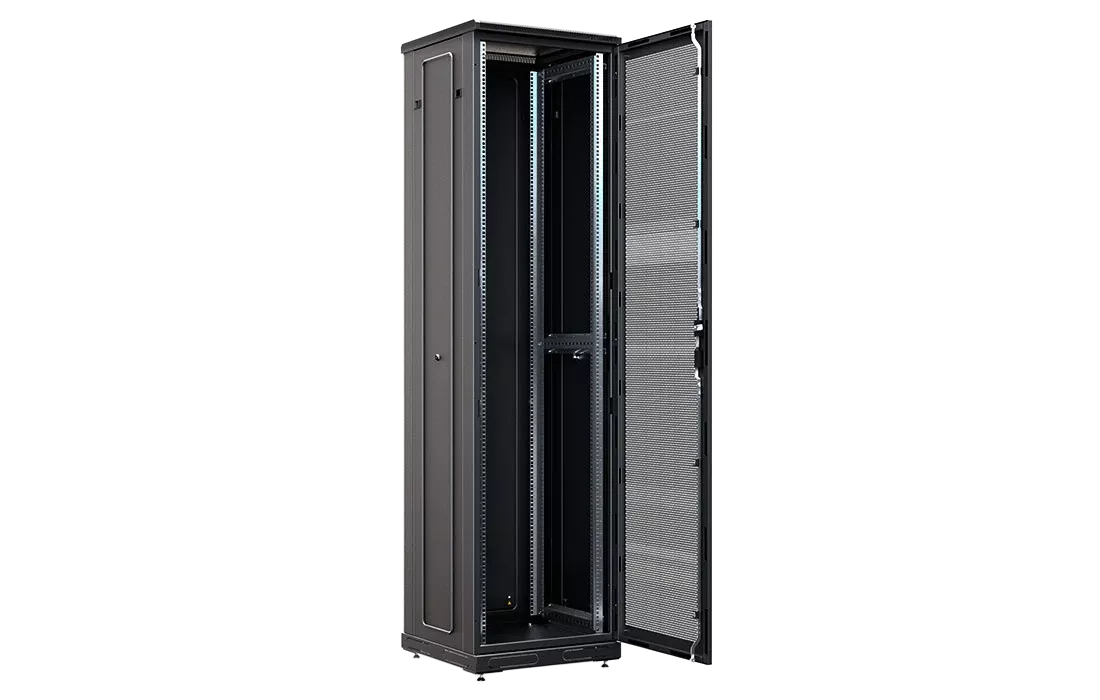 Шкаф телекоммуникационный напольный 19", 47U (600x800), ШТ-НП-М-47U-600-800-П-Ч, передняя дверь перфорация, черный ССД