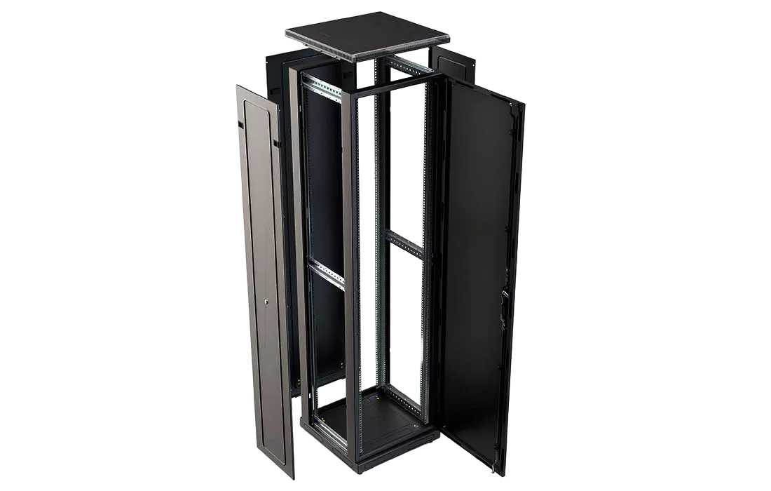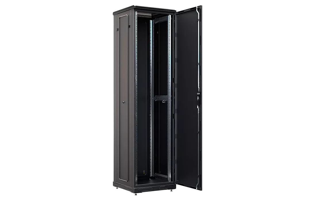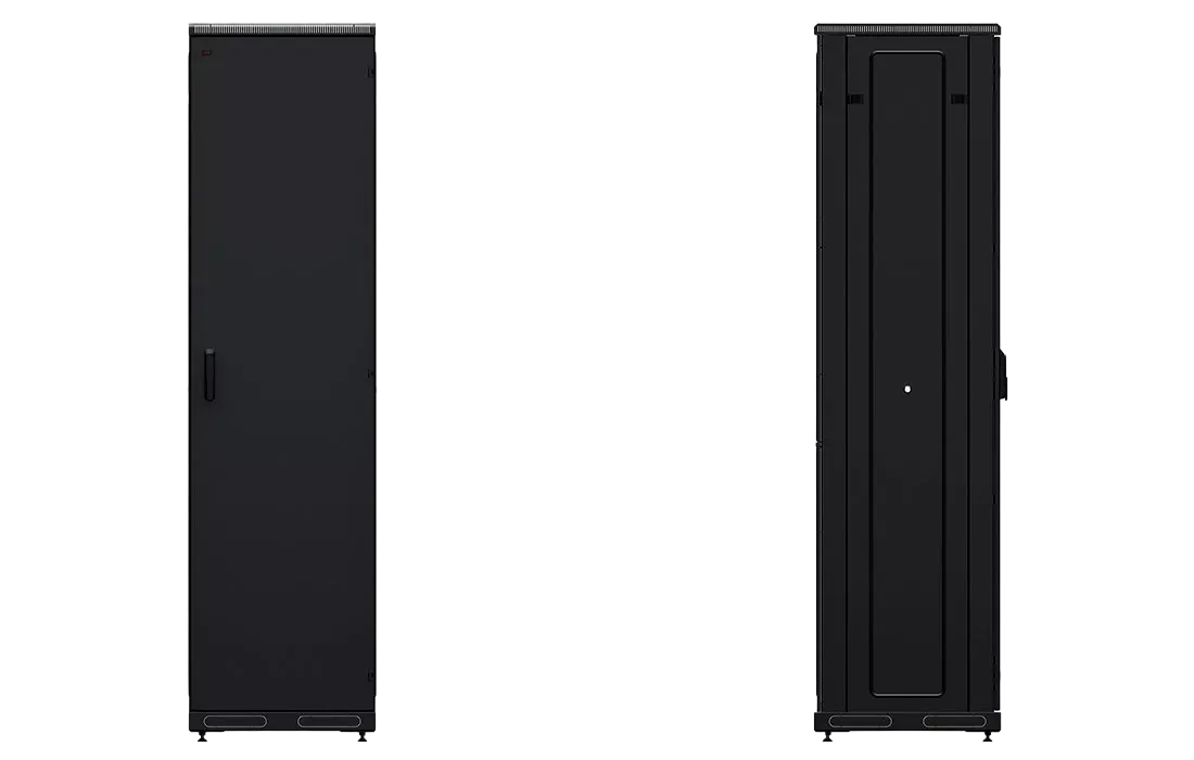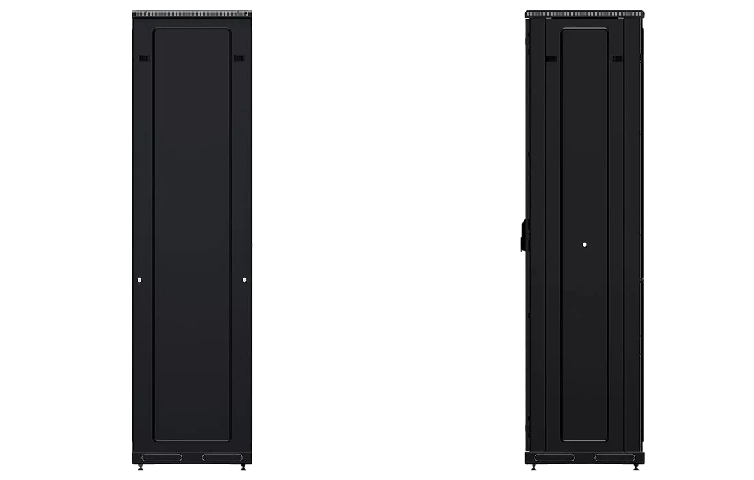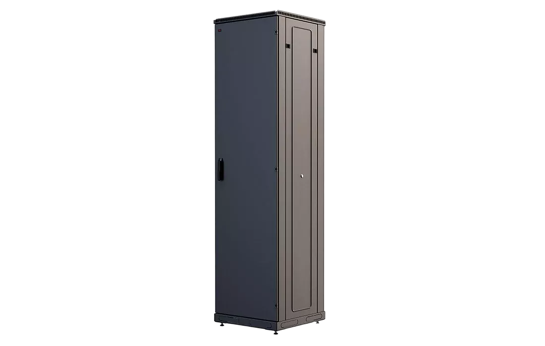За счет элементов крепления каркас шкафа имеет повышенную жесткость. Распределенная вертикальная нагрузка до 800 кг. Стандартно шкаф комплектуется: передней дверью, боковыми и задней стенками с замками.