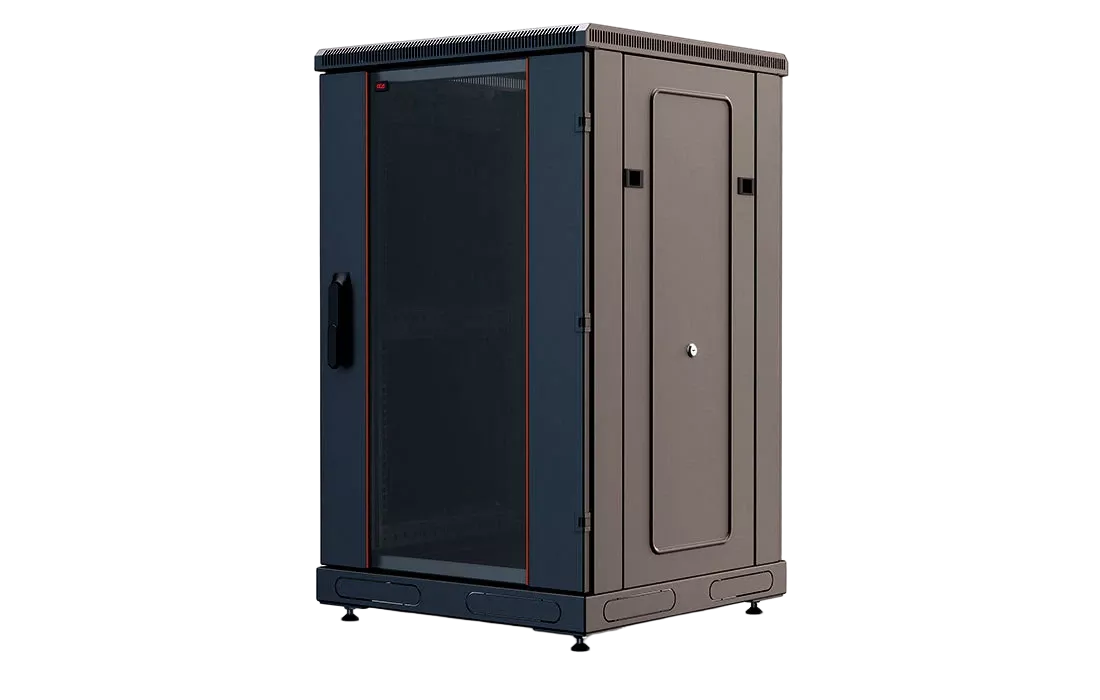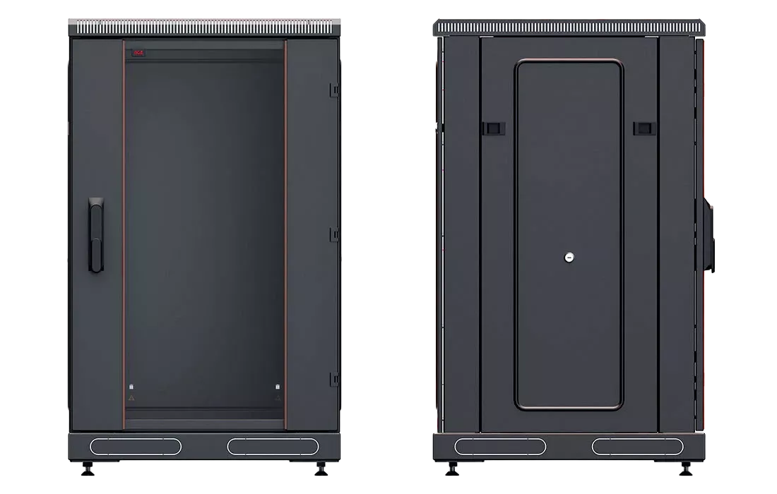 За счет элементов крепления каркас шкафа имеет повышенную жесткость. Распределенная вертикальная нагрузка до 800 кг. Стандартно шкаф комплектуется: передней дверью, боковыми и задней стенками с замками.