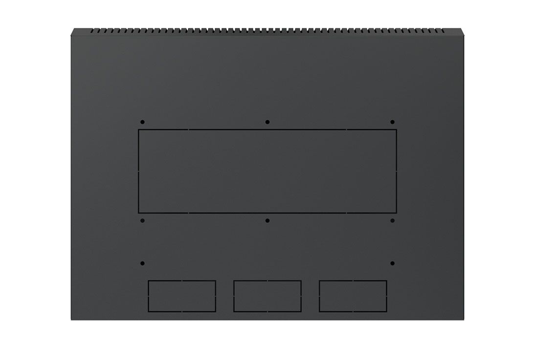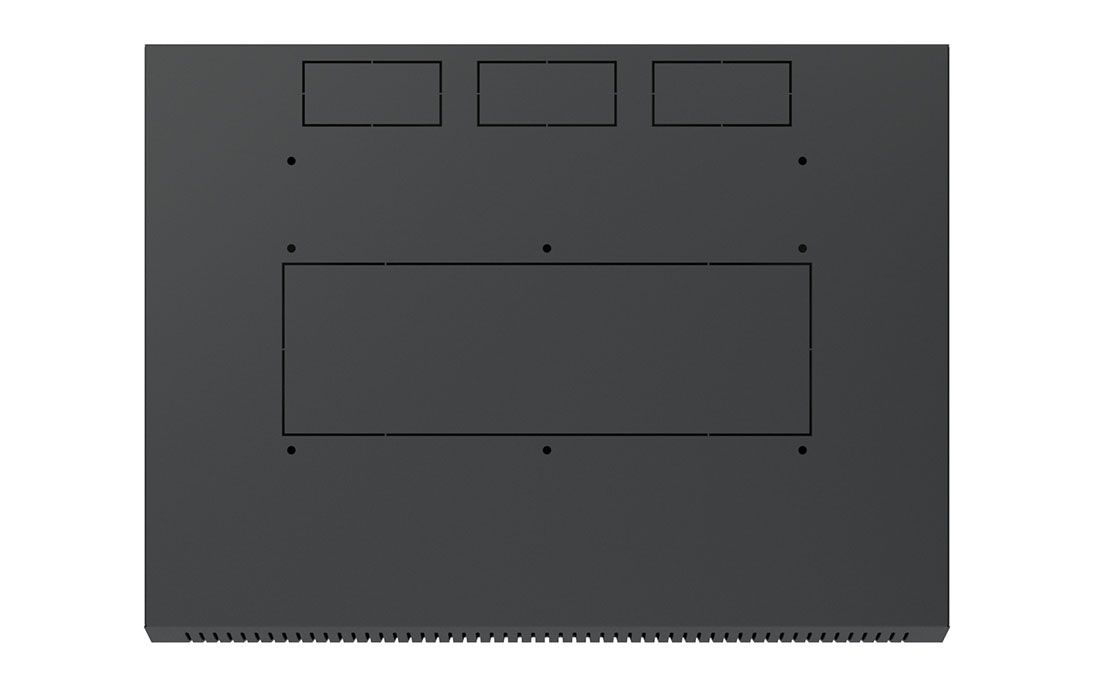 Имеет полностью разборную конструкцию и состоит из шести основных частей: крыша, дно, две боковые стенки с вертикальными направляющими, дверь, задняя стенка* и две передние направляющие. За счет элементов крепления каркас шкафа имеет повышенную жесткость. Комплектация шкафа возможна с несколькими исполнениями двери-металлической, перфорированной и с каленым ударопрочным, тонированным стеклом. Предусмотрены два кабельных ввода в верхней и нижней частях шкафа, размер – 100х50 мм. В основание или крышу шкафа возможна установка вентиляторного модуля. Для установки модуля демонтируется заглушка, и модуль фиксируется шестью винтами. Вертикальные направляющие регулируются по глубине. Система заземления и задняя стенка входит в стандартную комплектацию.