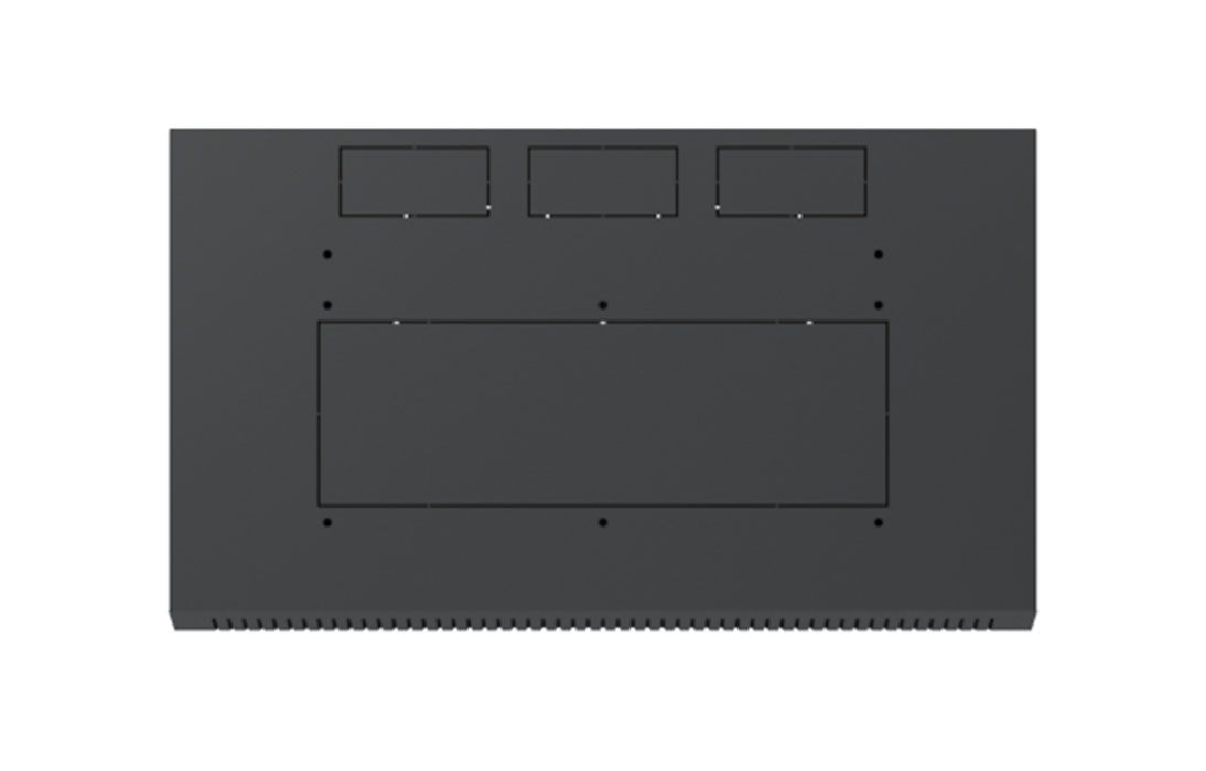 Имеет полностью разборную конструкцию и состоит из шести основных частей: крыша, дно, две боковые стенки с вертикальными направляющими, дверь, задняя стенка* и две передние направляющие. За счет элементов крепления каркас шкафа имеет повышенную жесткость. Комплектация шкафа возможна с несколькими исполнениями двери-металлической, перфорированной и с каленым ударопрочным, тонированным стеклом. Предусмотрены два кабельных ввода в верхней и нижней частях шкафа, размер – 100х50 мм. В основание или крышу шкафа возможна установка вентиляторного модуля. Для установки модуля демонтируется заглушка, и модуль фиксируется шестью винтами. Вертикальные направляющие регулируются по глубине. Система заземления и задняя стенка входит в стандартную комплектацию.
