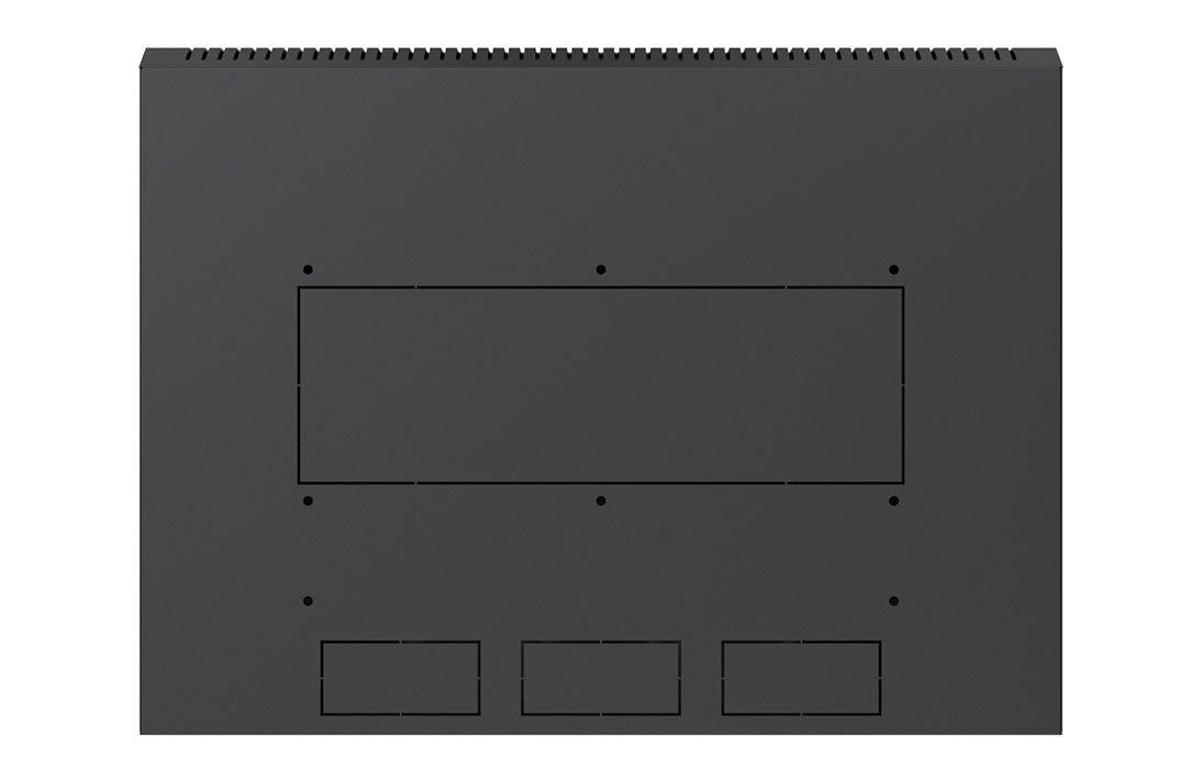 Имеет полностью разборную конструкцию и состоит из шести основных частей: крыша, дно, две боковые стенки с вертикальными направляющими, дверь, задняя стенка* и две передние направляющие. За счет элементов крепления каркас шкафа имеет повышенную жесткость. Комплектация шкафа возможна с несколькими исполнениями двери-металлической, перфорированной и с каленым ударопрочным, тонированным стеклом. Предусмотрены два кабельных ввода в верхней и нижней частях шкафа, размер – 100х50 мм. В основание или крышу шкафа возможна установка вентиляторного модуля. Для установки модуля демонтируется заглушка, и модуль фиксируется шестью винтами. Вертикальные направляющие регулируются по глубине. Система заземления и задняя стенка входит в стандартную комплектацию.