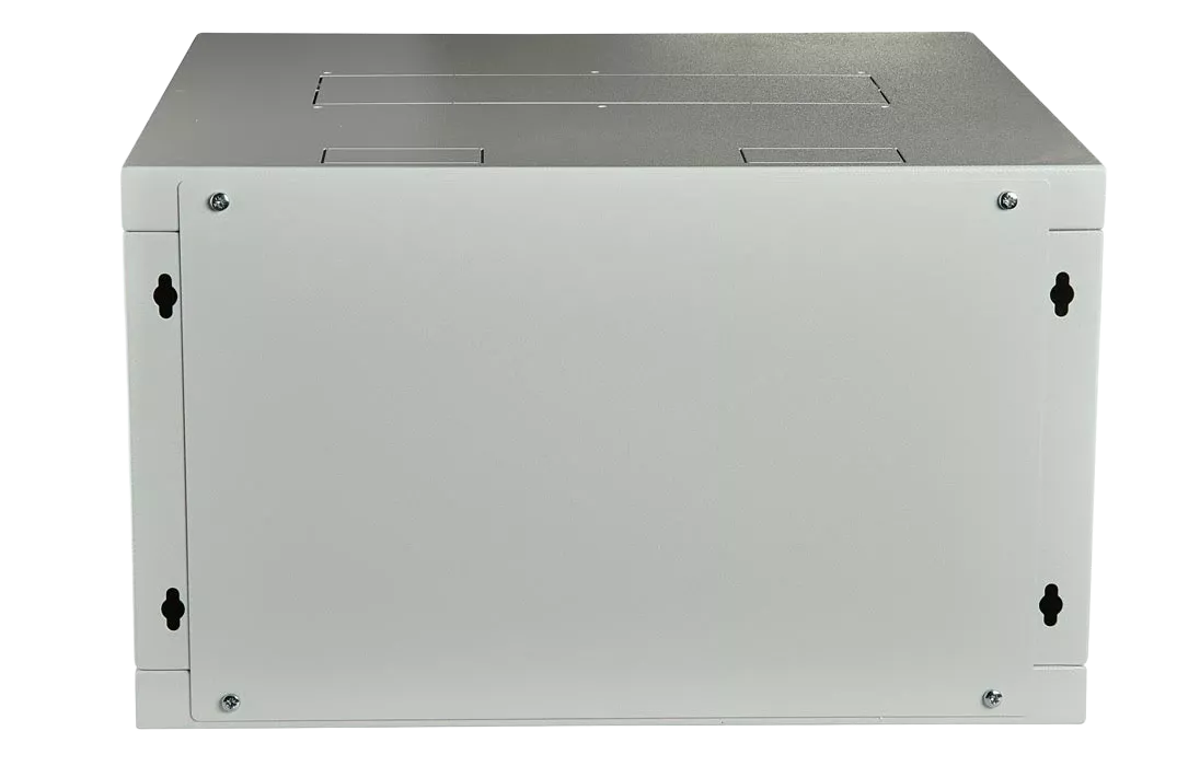 Имеет полностью разборную конструкцию и состоит из шести основных частей: крыша, дно, две съемные боковые стенки с вертикальными направляющими, дверь, задняя стенка* и две передние направляющие. За счет элементов крепления каркас шкафа имеет повышенную жесткость. Комплектация шкафа возможна с несколькими исполнениями двери-металлической, перфорированной и с каленым ударопрочным, тонированным стеклом. Предусмотрены два кабельных ввода в верхней и нижней частях шкафа, размер – 100х50 мм. В основание или крышу шкафа возможна установка вентиляторного модуля. Для установки модуля демонтируется заглушка, и модуль фиксируется шестью винтами. Вертикальные направляющие регулируются по глубине. Система заземления шкафа входит в стандартную комплектацию.