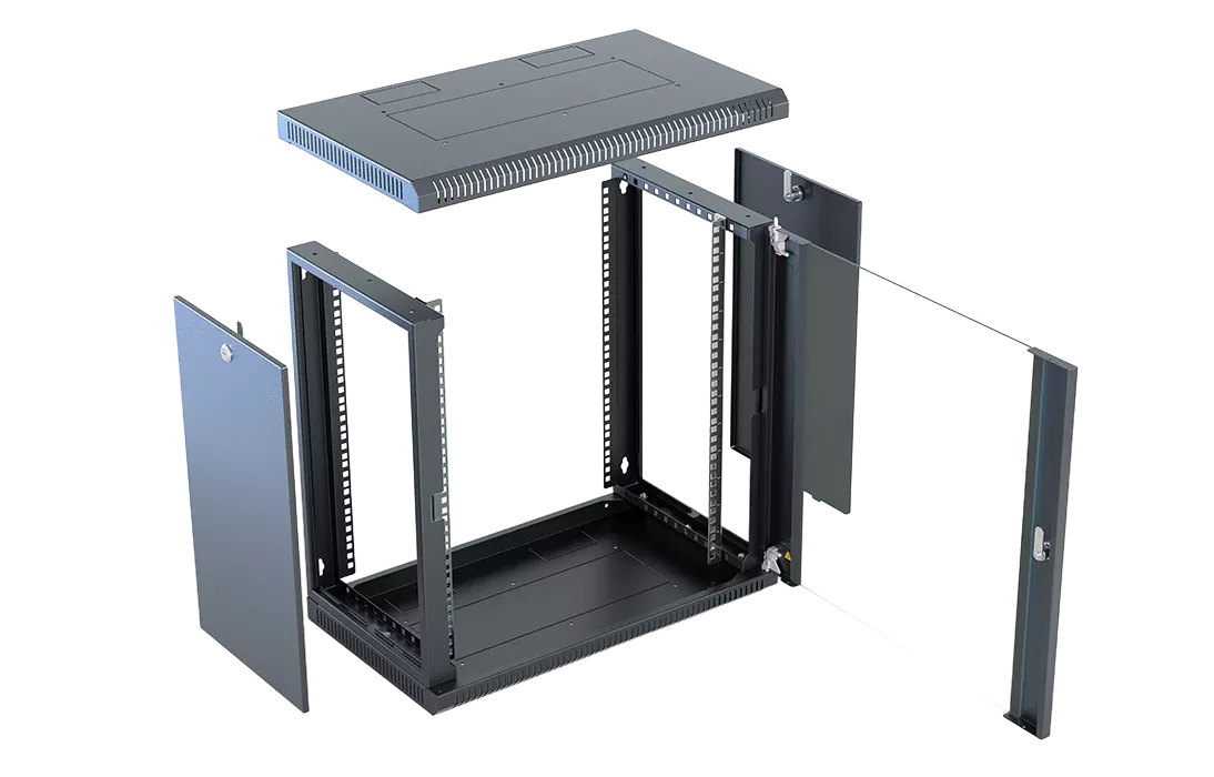 Шкаф телекоммуникационный настенный разборный со съемными боковыми стенками 19”,12U(600x650), ШТ-НСрМ-12U-600-650-С-Ч дверь стекло черный
