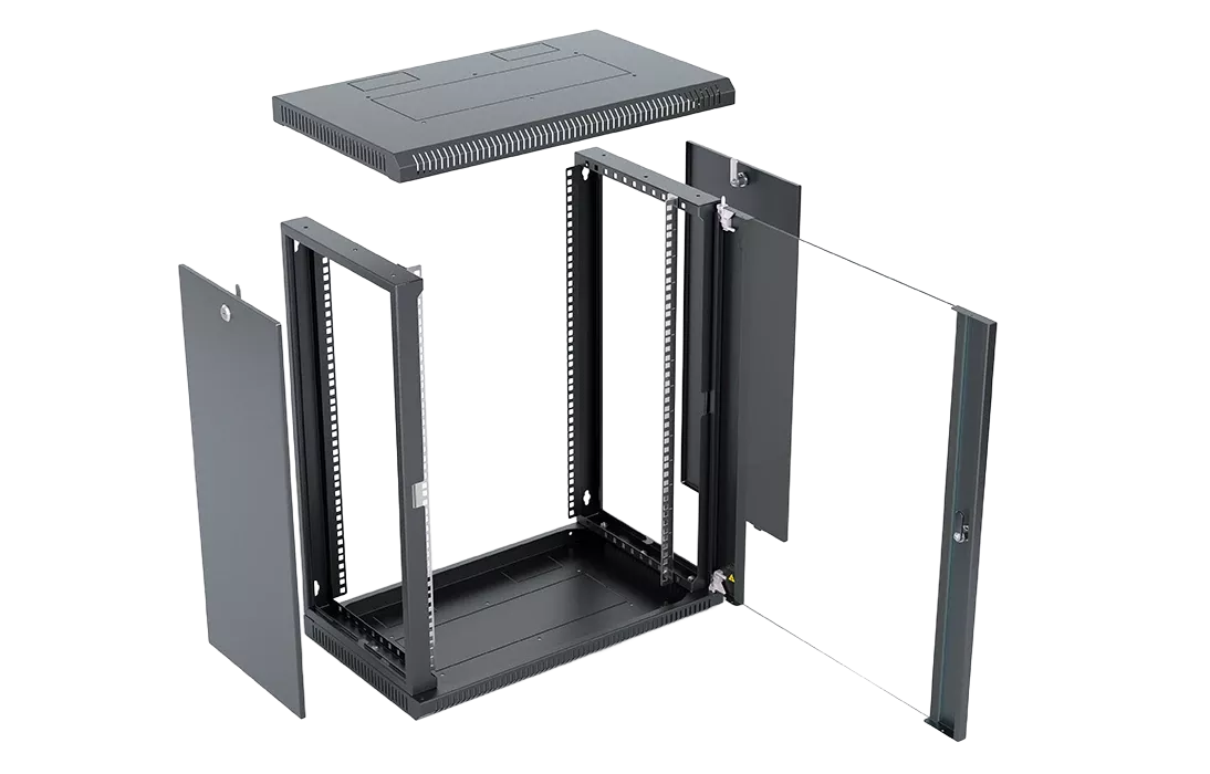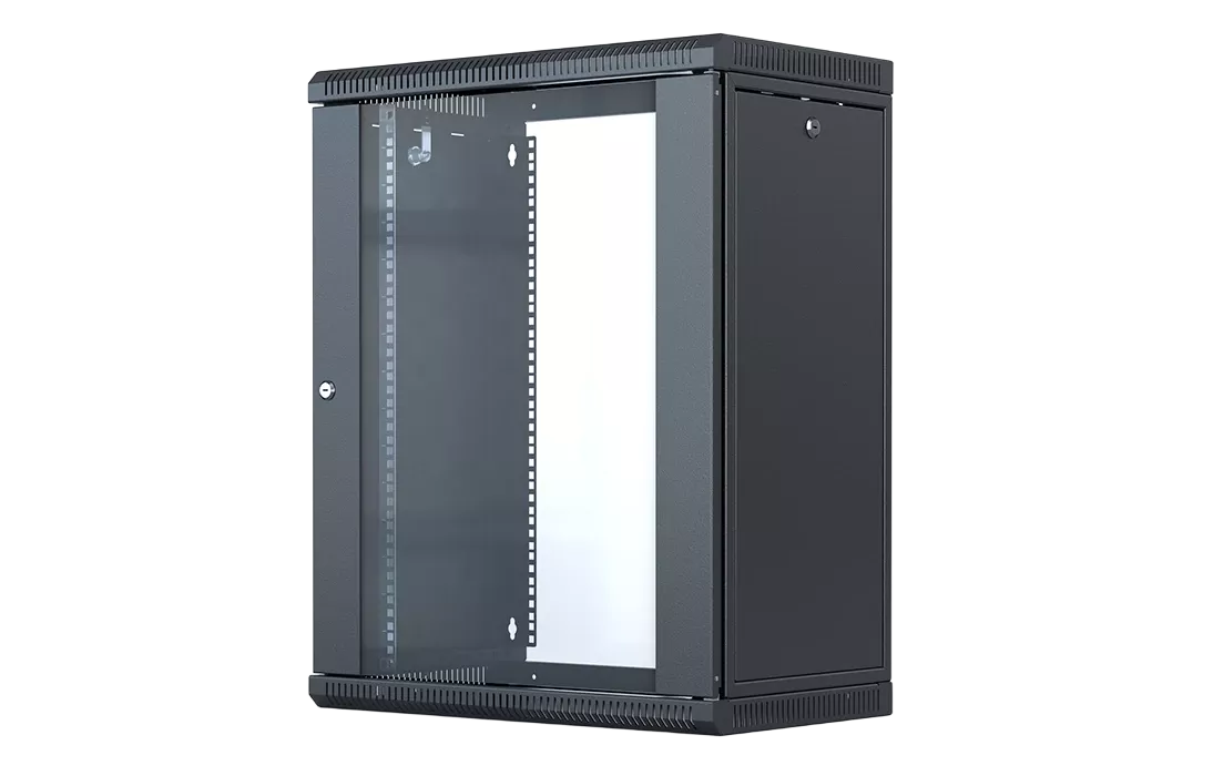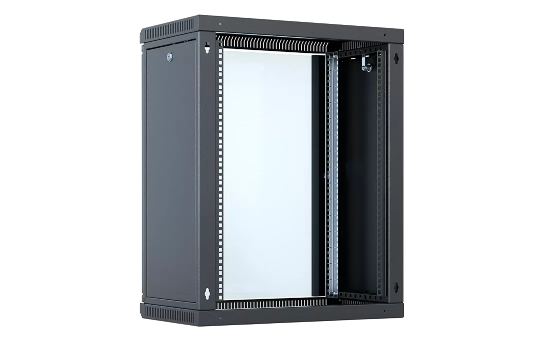 Шкаф телекоммуникационный настенный разборный со съемными боковыми стенками 19”,15U(600x350), ШТ-НСрМ-15U-600-350-С-Ч дверь стекло черный