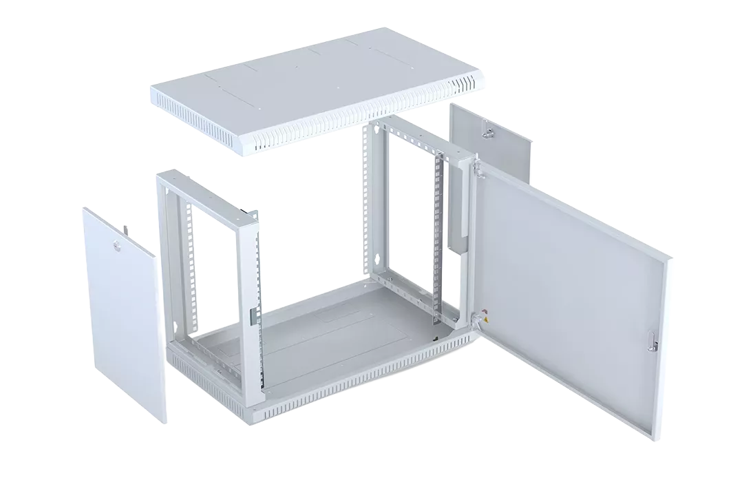 Шкаф телекоммуникационный настенный разборный со съемными боковыми стенками 19”,9U(600x350), ШТ-НСрМ-9U-600-350-М-Ч дверь металл черный