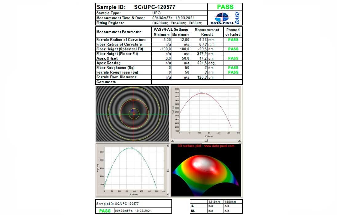 Высокое качество оптических шнуров серии ССД HS гарантируется 100% контролем качества оптических параметров шнуров. Типовое качество полировки торца ферулы приведено на фото с экрана интерферометра.
