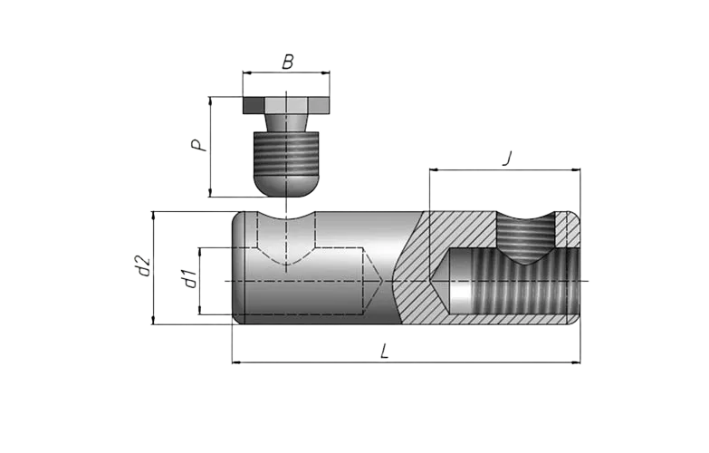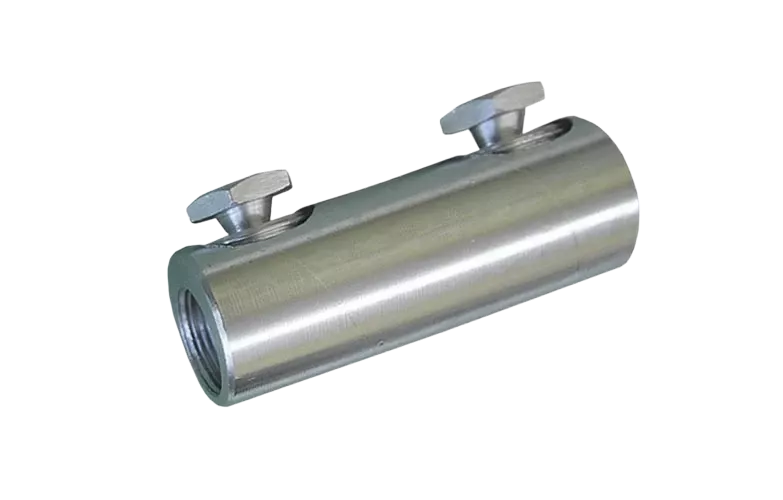 Соединитель СБ закрепляется при помощи болта со специальной срывной головкой, которая скручивается при достижении определенного усилия, обеспечивая надежное соединение.