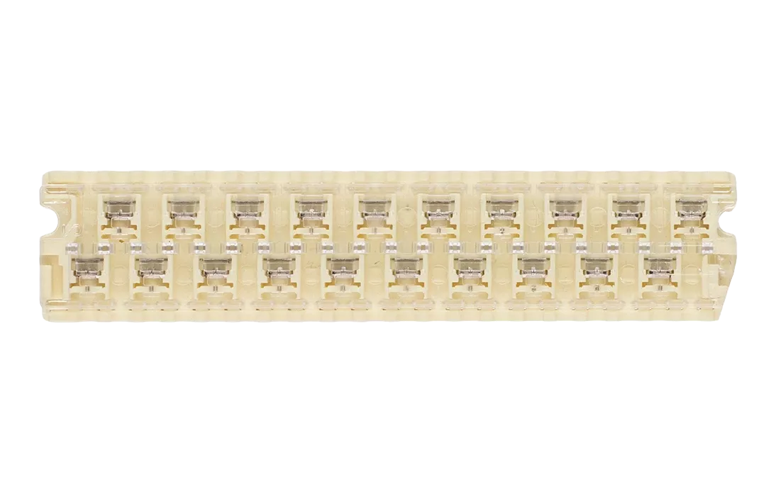 Предназначен для одновременного прямого соединения 10 пар жил. Прозрачные крышки и основания обеспечивают возможность визуального контроля состояния контактов без вскрытия соединителя.