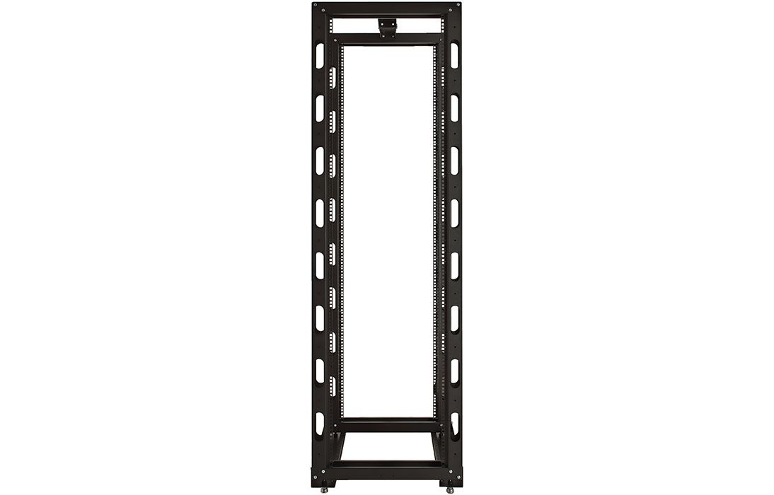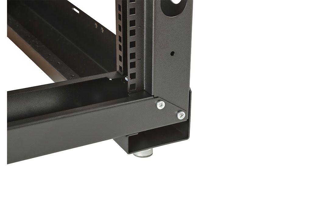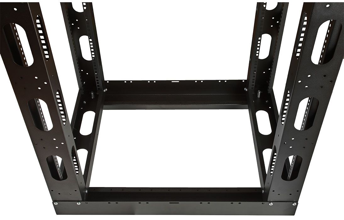 Универсальные стойки 19" имеют полностью разборную двухрамную конструкцию, каркас повышенной жесткости скреплен болтами, материал сталь 2 мм и 1.5 мм. Для удобства монтажа и коммутации оборудования предусмотрена перфорация по всей длине рамы, широкий спектр аксессуаров. Двухрамная универсальная стойка 19" имеет регулировку полезной глубины – 750 мм, 650 мм, 550 мм, 450 мм. Возможно крепление стоек между собой через вертикальный кабельный органайзер. Стойка устанавливается на регулируемые винтовые опоры (ножки), компенсирующие неровности пола, или ролики.