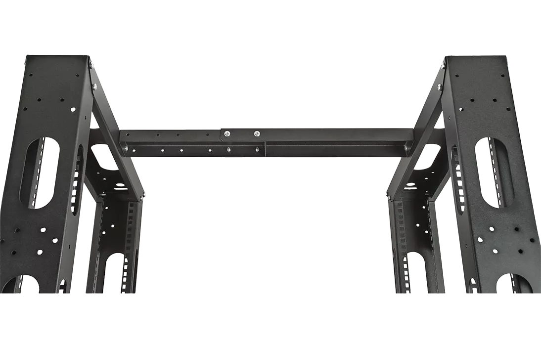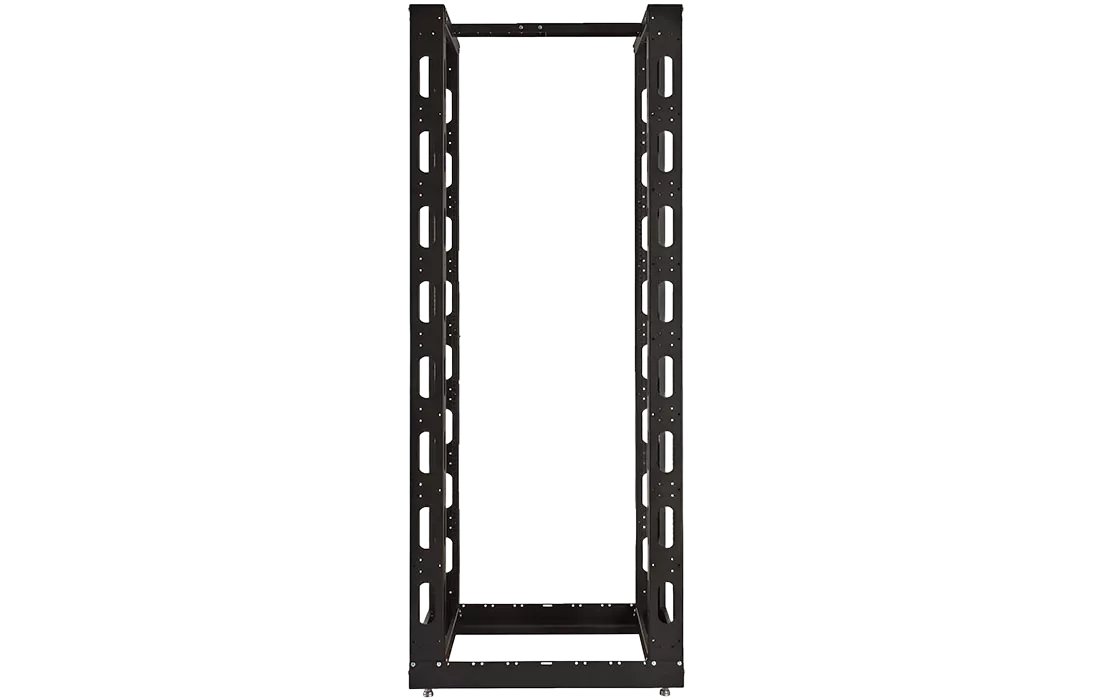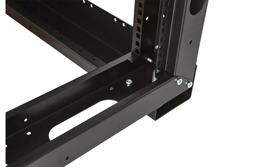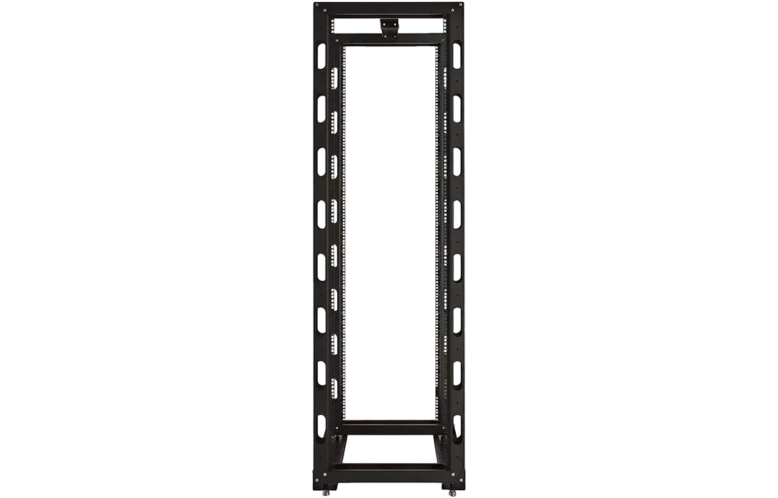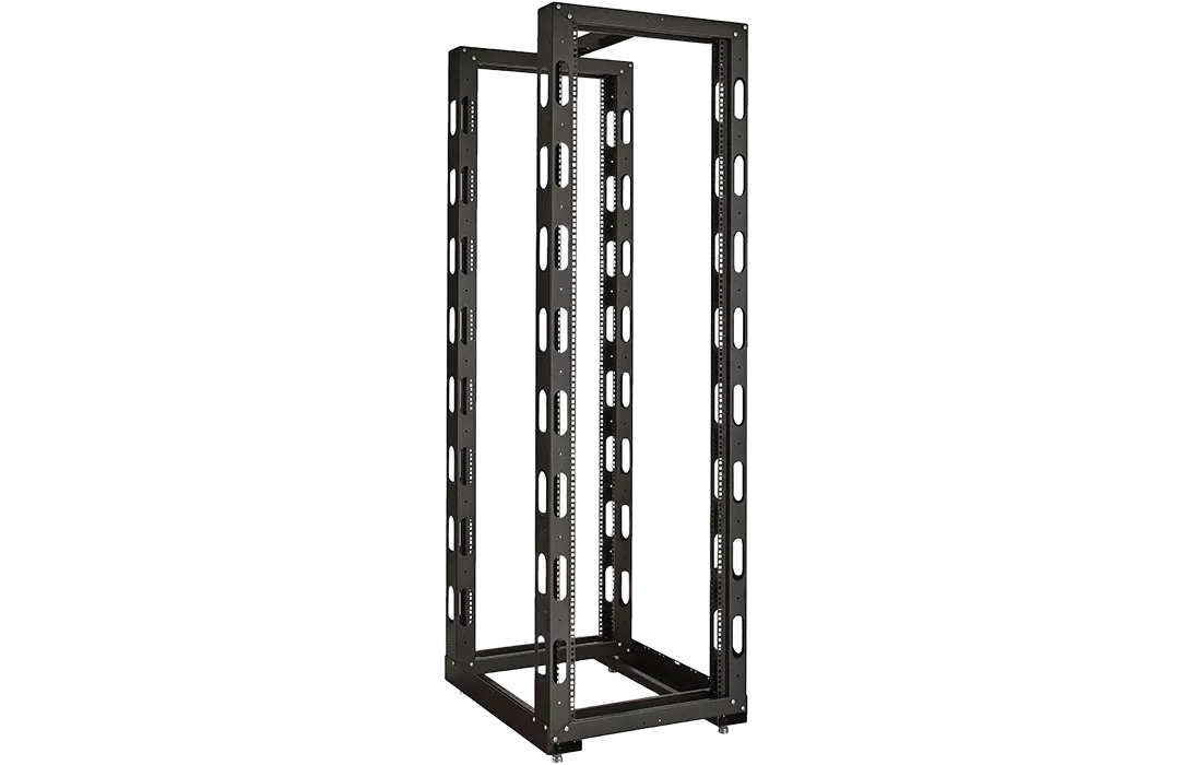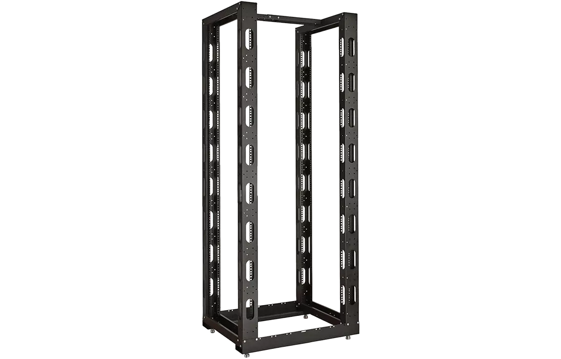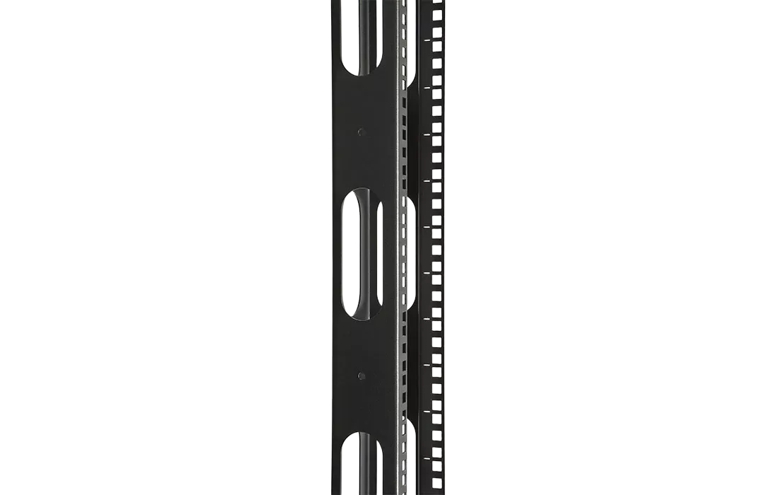 Универсальные стойки 19" имеют полностью разборную двухрамную конструкцию, каркас повышенной жесткости скреплен болтами, материал сталь 2 мм и 1.5 мм. Для удобства монтажа и коммутации оборудования предусмотрена перфорация по всей длине рамы, широкий спектр аксессуаров. Двухрамная универсальная стойка 19" имеет регулировку полезной глубины – 750 мм, 650 мм, 550 мм, 450 мм. Возможно крепление стоек между собой через вертикальный кабельный органайзер. Стойка устанавливается на регулируемые винтовые опоры (ножки), компенсирующие неровности пола, или ролики.