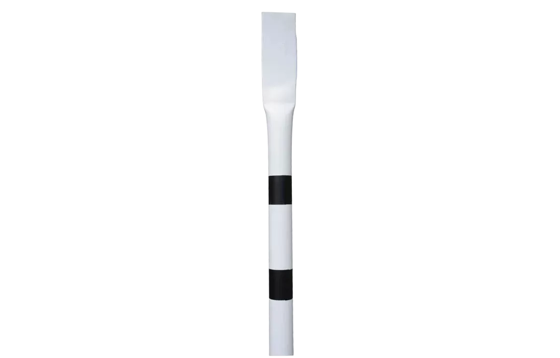 Представляет собой белую пластиковую трубу с двумя черными полосами, которые нанесены в верхней трети столбика. Верхняя часть трубы плоская, для размещения информационной таблички или специальной информации. Для фиксации столбика в грунте, в нижней его части предусмотрены отверстия диаметром 15 мм для установки анкера (приобретает дополнительно).
