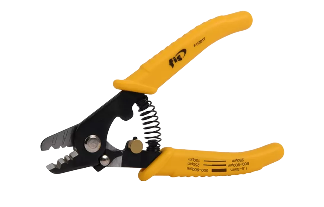 FT11301T - стриппер для работы с оптическим волокном, имеющий три отверстия для снятия оболочек различного диаметра: 1ое – для удаления 2-3 мм буфера, 2ое- для удаления 900мкм буфера и 3е – для снятия 250мкм лакового покрытия волокна.