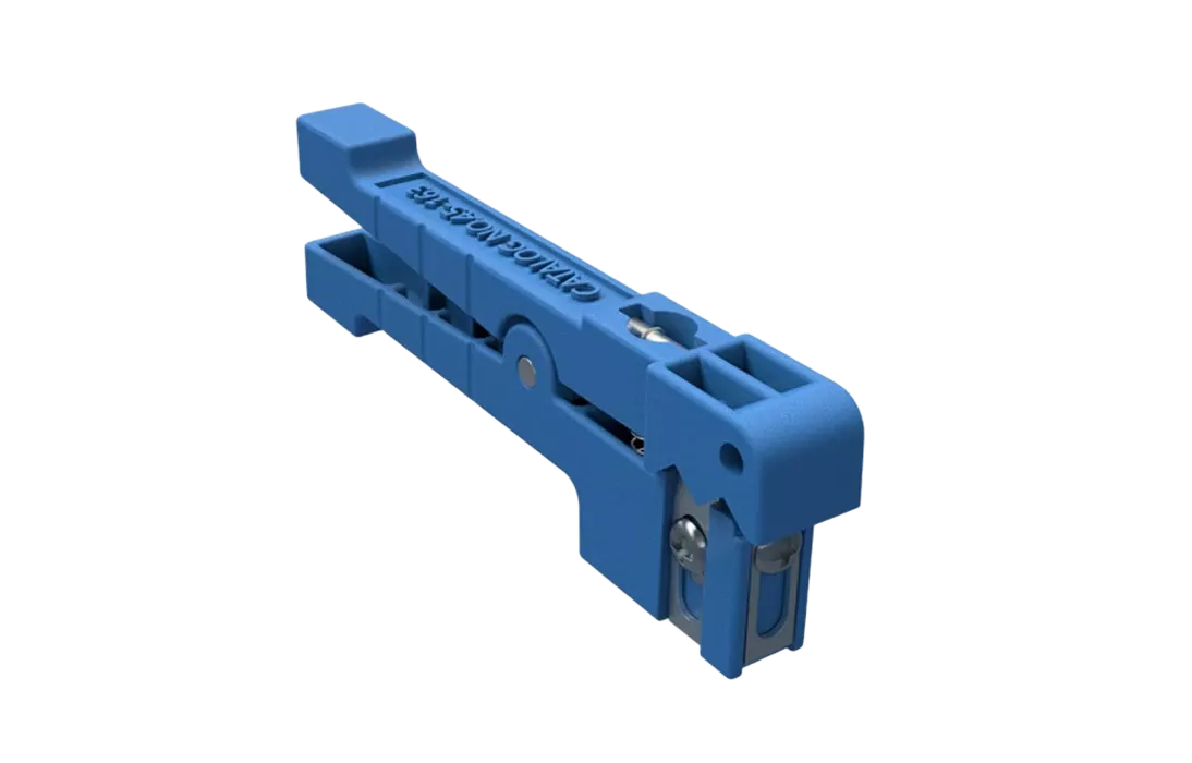 Стриппер-прищепка 45-163 предназначен для удаления внешних модулей диаметром от 3,2 до 5,6мм. Инструмент имеет два лезвия для продольной и поперечной резки. Имеется возможность регулировки положения лезвий (вручную ослабляя-затягивая удерживающий винт) для выставления нужной глубины прорезания. Удобен для разделки модулей оптических кабелей, а так же коаксиальных кабелей.