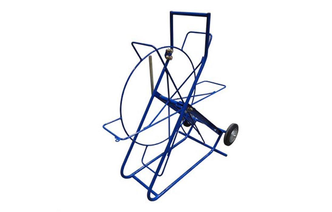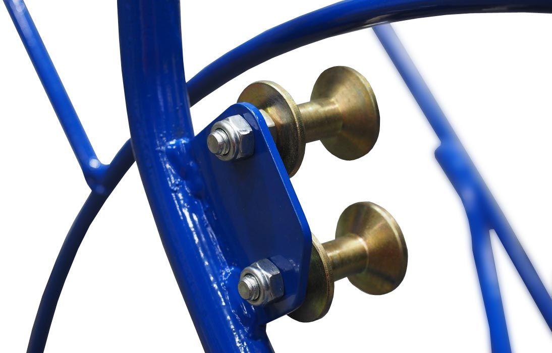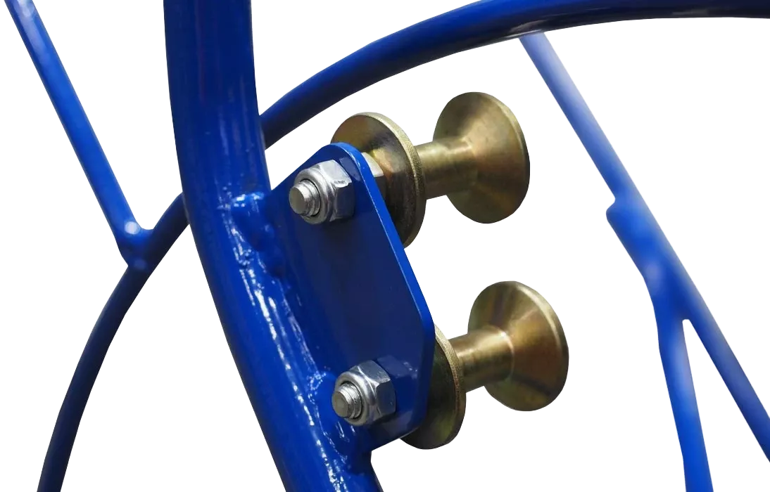 Тележка УЗК представляет собой рамную конструкцию с осью, на которой установлена катушка для размещения стеклопластикового прутка. Для предотвращения самопроизвольного вращения катушки в нерабочем положении и при транспортировке, ось тележки оснащена зажимным винтом с удобным исполнением ручки. В верхней части вертикальной рамы располагаются направляющие ролики для прохода рабочего конца стеклопрутка. В нижней части рамы, с двух сторон, имеются отверстия, в которые при необходимости можно дополнительно установить комплект роликов (приобретается дополнительно). В основании рамы установлены два колеса, а верхняя часть рамы выполнена в виде эргономичной ручки.