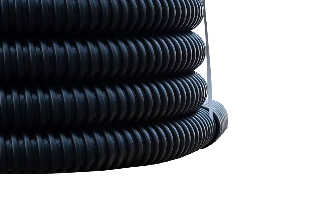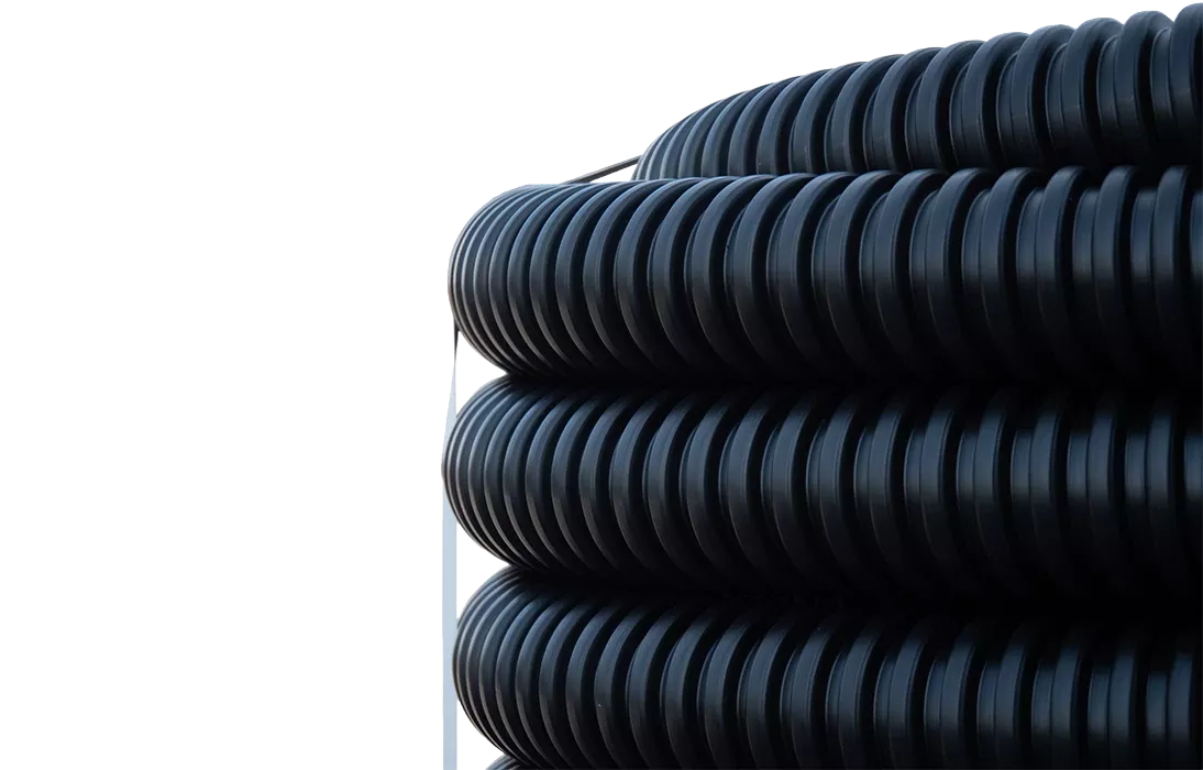 - один равномерный внутренний диаметр трубопровода на всем протяжении, от колодца до колодца, в отличие от других трубных решений, когда например, при сварке отрезков трубы происходит сужение внутреннего диаметра канала за счет образования грата (наплыва) полиэтилена.