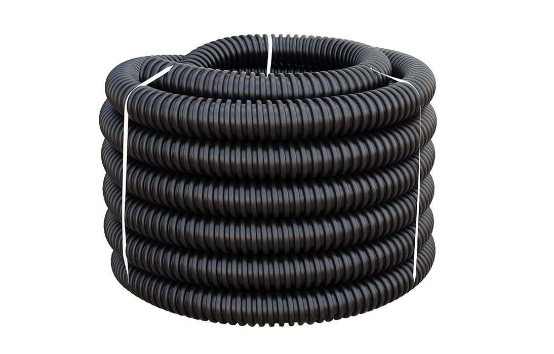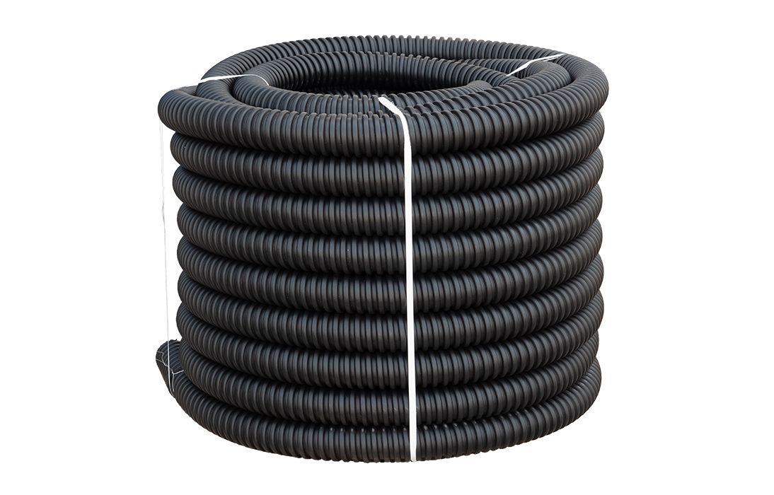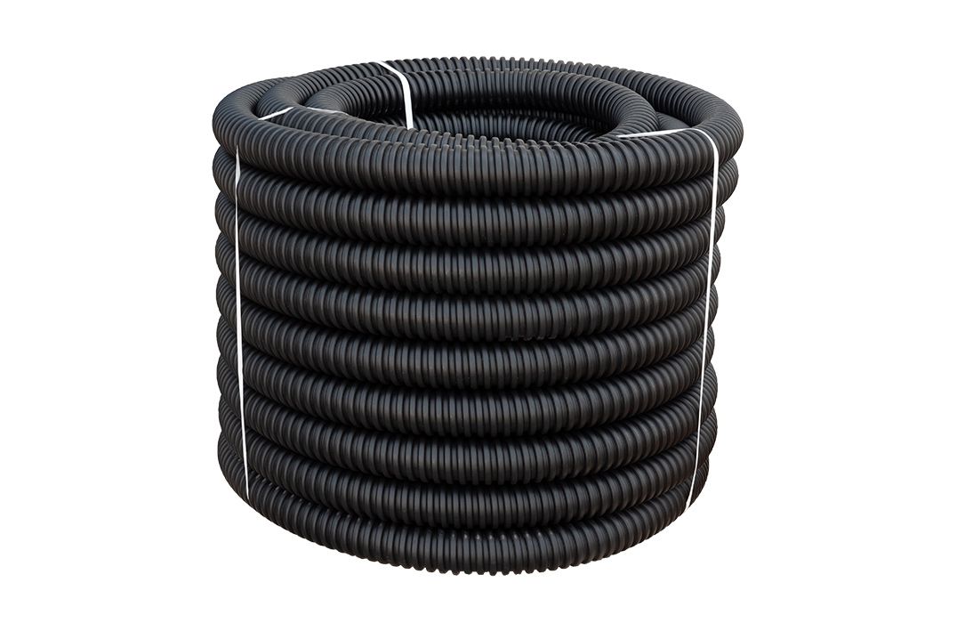 Труба ССД-Пайп УльтраФ, OD=90 мм, 1100N, SN22, с протяжкой (бухта 68 м) Труба полимерная жёсткая гофрированная спиральная ультрафиолетостойкая, не распространяющая горение