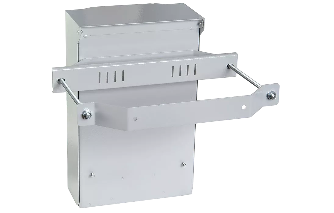 На задней стенке кросса устанавливаются специальные кронштейны за которые с помощью двух длинных шпилек корпус можно закрепить на опорах в двух точках.