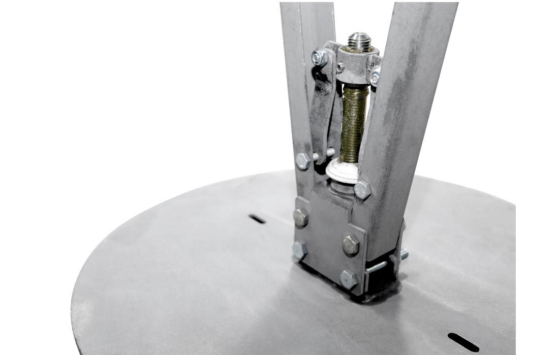 Устройство УЗНК представляет собой стальную плиту толщиной 5 мм круглой формы, оснащенную рычажно-винтовым механизмом. Рычажно-винтовой механизм с помощью болтов с самоконтрящимися гайками соединяется с закрепленным на плите швеллером. Рабочие узлы и крепежные детали устройства УЗНК изготовлены из нержавеющей стали и латуни. Для придания высокой коррозийной стойкости стальная крышка покрывается цинксодержащей порошковой смесью методом термодиффузионного цинкования (ТДЦ).