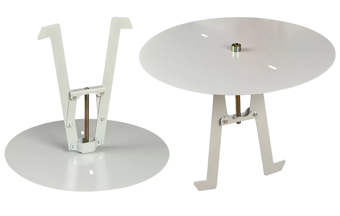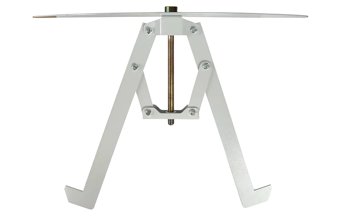 Устройство «УЗНКЛО-1» представляет собой стальную плиту толщиной 2 мм, круглой формы, оснащенную рычажно-винтовым механизмом. Рычажно-винтовой механизм соединен с плитой при помощи втулки, которая вставляется в плиту, с обратной стороны накручивается гайка на внешнюю резьбу втулки. Все рабочие узлы и крепежные детали устройства УЗНКЛО-1 изготовлены из стали. Для защиты от коррозии стальная крышка и рычаги покрыты порошковой краской, а винт покрыт слоем цинка.