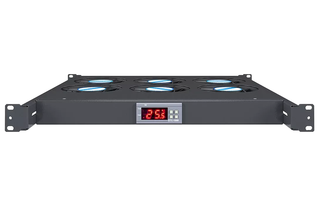 В вентиляторных модулях установлено цифровое термореле с регулировкой в диапазоне от 0 до +60. Устанавливается на 19” направляющие.