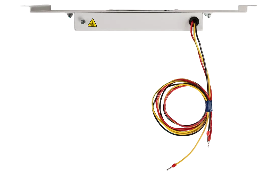 Устанавливается к боковой стене шкафа с помощью гаек и шайб. Крепления на шпильки уже предусмотрены внутри шкафа. По умолчанию на этом месте установлен защитный экран, модуль устанавливается на его место.