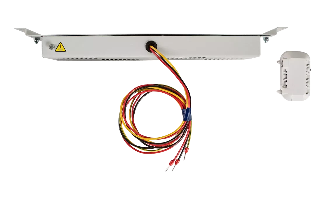 Устанавливается к боковой стене шкафа с помощью гаек и шайб. Крепления на шпильки уже предусмотрены внутри шкафа. По умолчанию на этом месте установлен защитный экран, модуль устанавливается на его место.