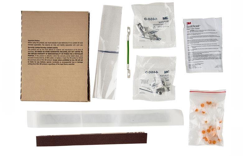Представляет собой комплект деталей и материалов. В комплект каждой муфты входит заливочный гель Пуласт в герметичной упаковке, детали и материалы для формирования заливочного пакета над сростком жил, а также одножильные соединители для жил, соединители экрана и экранный провод.