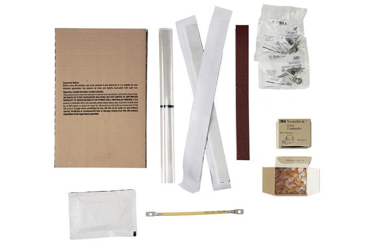 Представляет собой комплект деталей и материалов. В комплект каждой муфты входит заливочный гель Пуласт в герметичной упаковке, детали и материалы для формирования заливочного пакета над сростком жил, а также одножильные соединители для жил, соединители экрана и экранный провод.