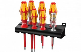 WE-006147 160 i/162 i/7 Rack VDE Набор диэлектрических отвёрток + пробник + подставка, 7 пр., PH 1-2, SL 2.5-3.5-4-5.5