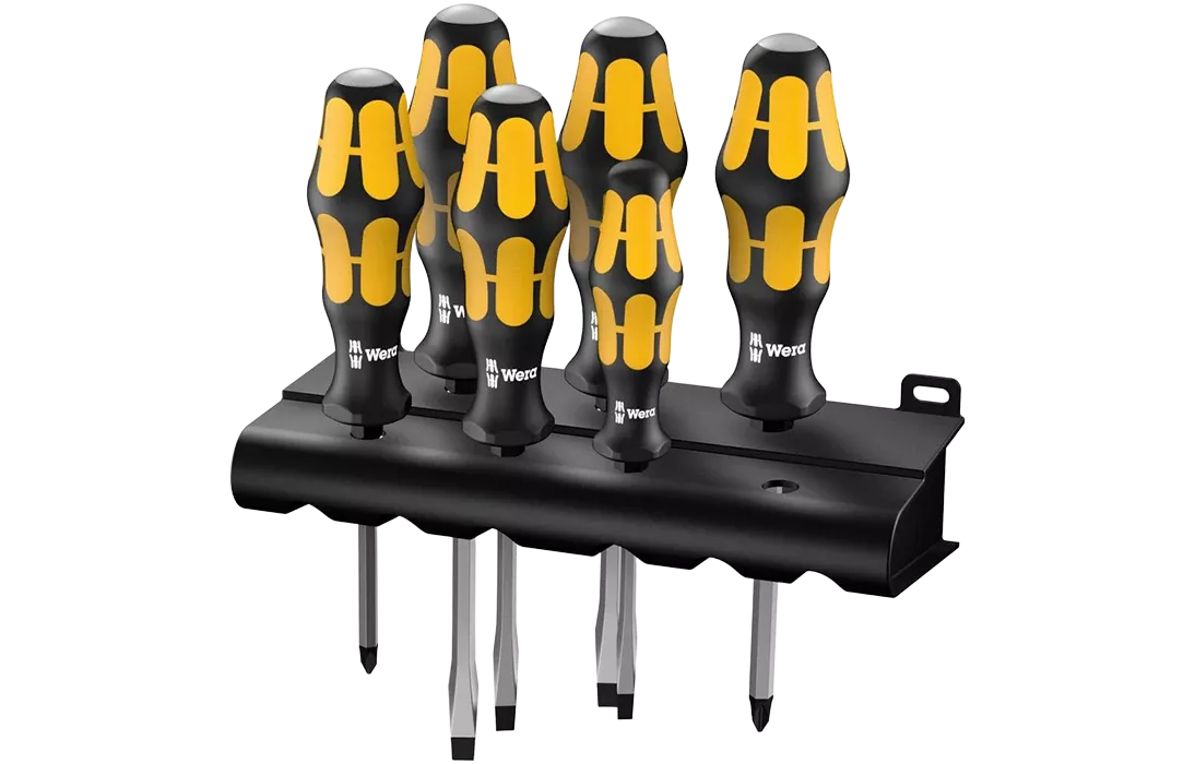 WE-018282 932/6 Набор отвёрток силовых с подставкой, 6 пр., PH 1x80/2x100, SL 0.6x3.5x80/0.8x4.5x90/1x5.5x100/1.2x7.0x125