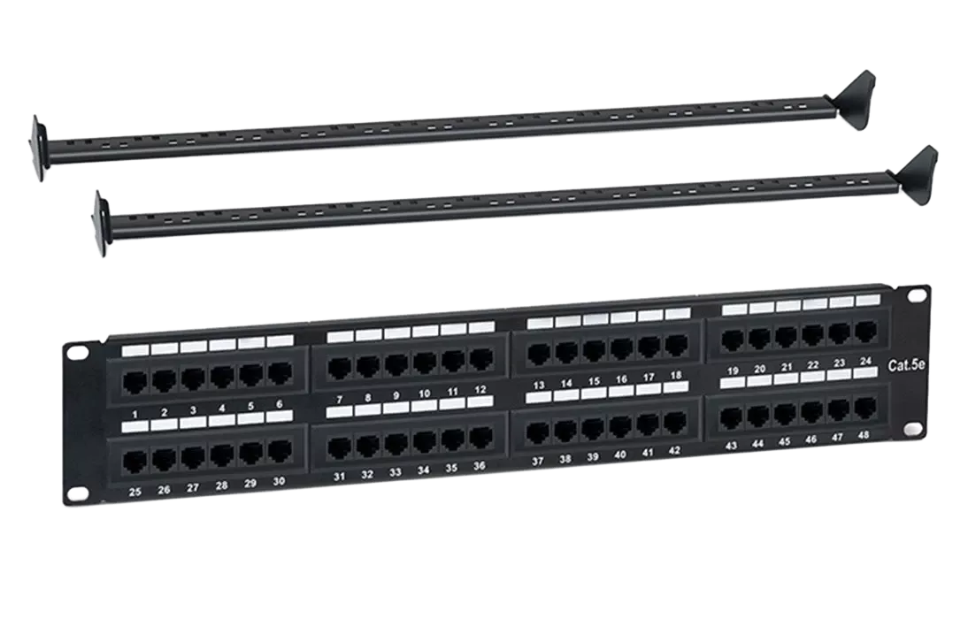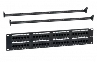 WRline WR-PL-48-C5E-D Патч-панель 19" (2U), 48 портов RJ-45, категория 5e, Dual IDC, с задним кабельным организатором, цвет черный