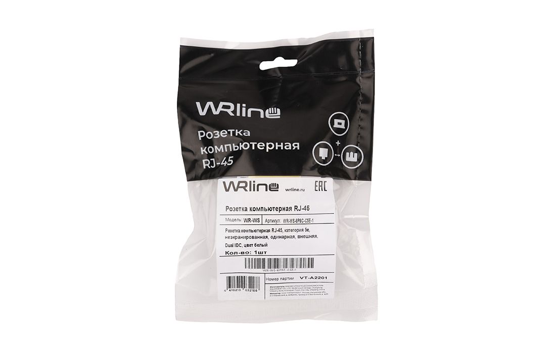 WRline WR-WS-8P8C-C5E-1 Розетка компьютерная RJ-45, категория 5e, неэкранированная, одинарная, внешняя, Dual IDC, цвет белый
