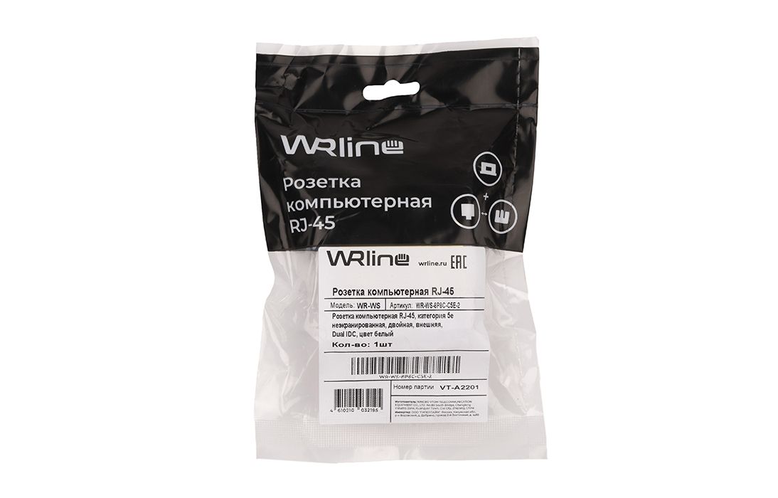 WRline WR-WS-8P8C-C5E-2 Розетка компьютерная RJ-45, категория 5e, неэкранированная, двойная, внешняя, Dual IDC, цвет белый