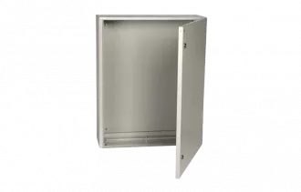 Сварной металлический корпус со съемной монтажной панелью. Дверца корпуса запирается на замок. Ключ замка имеет единый секрет. Корпуса со степенью защиты IP54, имеют на дверце уплотнение из двухкомпонентного герметика и пыле- влагонепроницаемый замок.