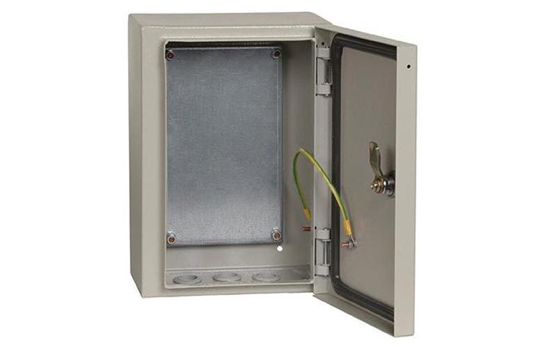 Сварной металлический корпус со съемной монтажной панелью. Дверца корпуса запирается на замок. Ключ замка имеет единый секрет. Корпуса со степенью защиты IP54, имеют на дверце уплотнение из двухкомпонентного герметика и пыле- влагонепроницаемый замок.