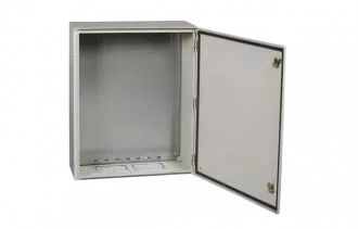 Сварной металлический корпус со съемной монтажной панелью. Дверца корпуса запирается на замок. Ключ замка имеет единый секрет. Корпуса со степенью защиты IP54, имеют на дверце уплотнение из двухкомпонентного герметика и пыле- влагонепроницаемый замок.