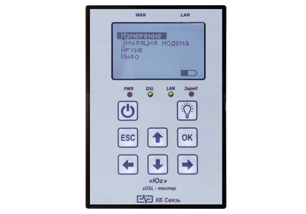ЮГ (верс. 7) тестер ADSL с фонарем освещения. предназначен для диагностики и быстрой оценки качества подключения канала широкополосного доступа с применением технологии семейства ADSL, ADSL2, ADSL2+.