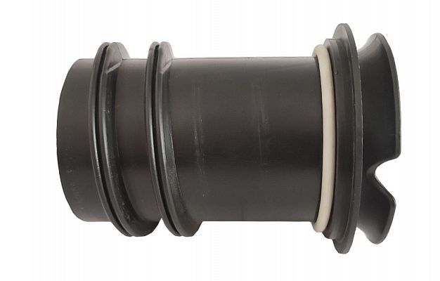 Заглушка представляет собой полый цилиндр с опорным раструбом (заглушённым) с одной стороны корпуса и наружной приемочной резьбой с другой стороны. Укомплектована уплотнительной резинкой, устанавливающейся в паз, расположенный на опорном раструбе.