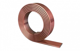 Омеднённая полоса изготавливается из катаной стали с электролитически нанесенным медным покрытием чистотой 99.9% и толщиной не менее 0.070 мм, составляющим молекулярное и неразрывное соединение со сталью.