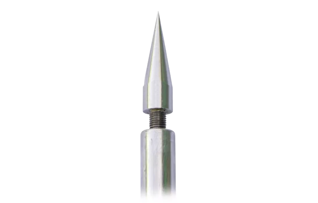 Традиционный молниеприёмник - это вертикальный заостренный штырь, направленный в небо и имеющий определённую высоту, рассчитываемую так, чтобы защищаемые здания располагались под ним.