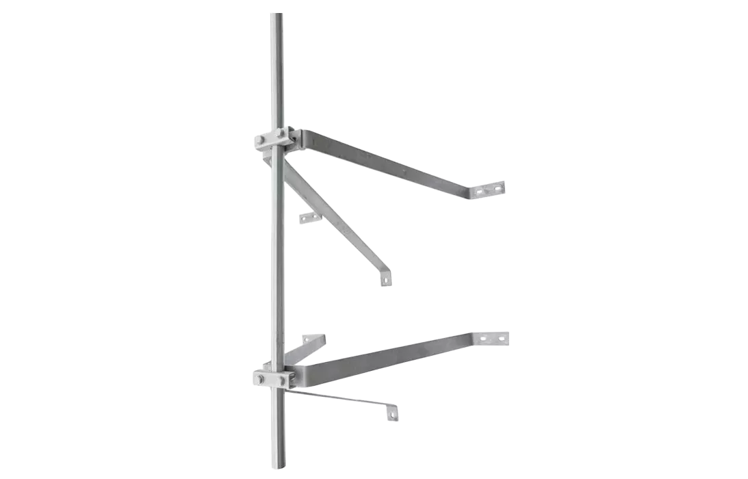 Крепление (поставляется набор из двух единиц) позволяет установить стержневой молниеприёмник (мачту) ZZ-201-004 на стене / фасаде здания.