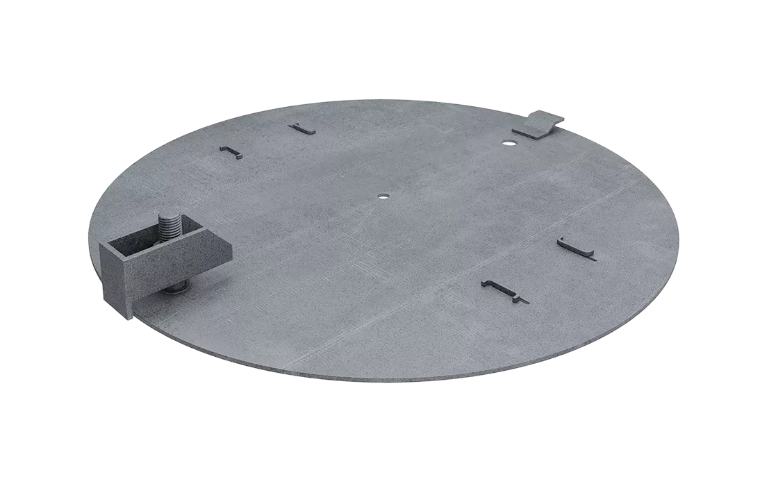 Представляет собой стальную плиту соединённой с кронштейном через болтовое соединение. При монтаже запорного устройства кронштейн, располагаемый с внутренней стороны колодца, прижимает стальную плиту ко второй опорной зоне корпуса люка. Монтаж и демонтаж УЗНКЛ0-1 осуществляется ключом КЭ-7п.