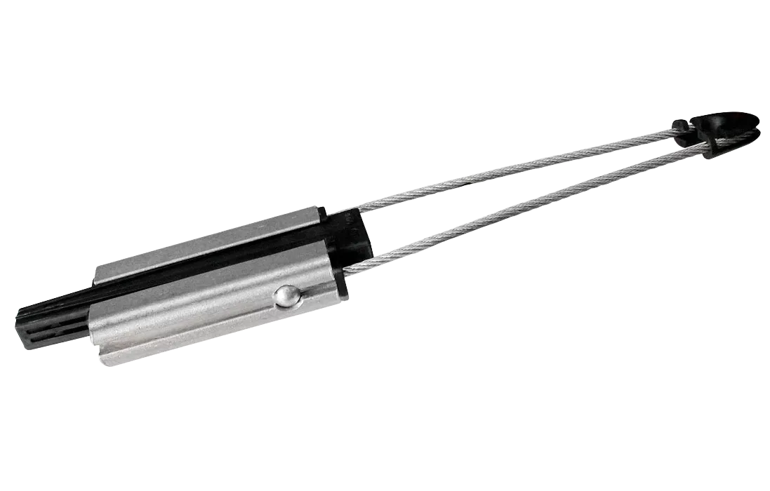 Корпус зажима изготовлен из прочного алюминиевого сплава. Клиновые вставки выполнены из изоляционного материала, стойкого к воздействию ультрафиолетового излучения, специальные ребра на внутренней поверхности надежно фиксируют проводник, не повреждая при этом изоляцию.