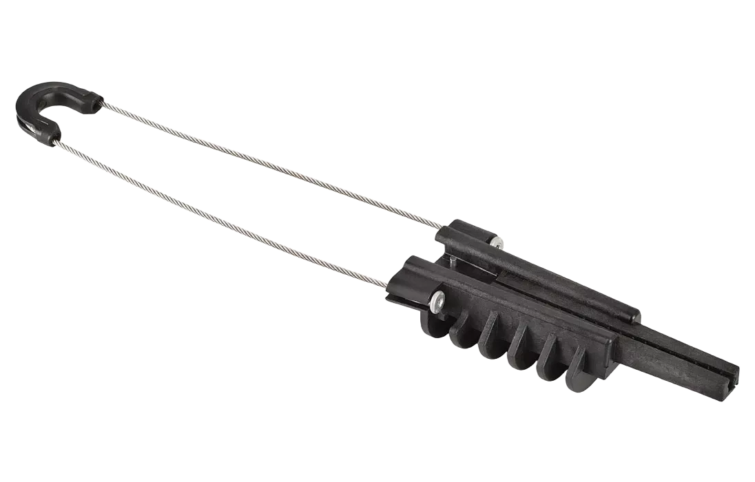 Предназначен для крепления оптического кабеля с внешним диэлектрическим силовым элементом (тросом). Позволяет просто и быстро закрепить кабель типа "8" за вынесенный диэлектрический трос. Нет необходимости оголять или же отделять несущий трос. Обеспечивает значительное сокращение продолжительности процесса подвес кабеля.