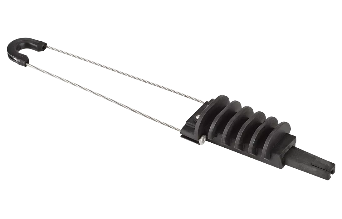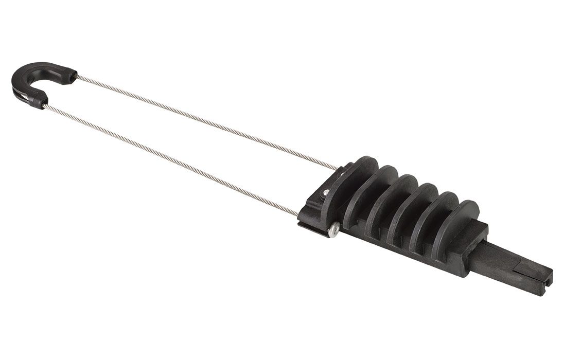 Предназначен для крепления оптического кабеля с внешним диэлектрическим силовым элементом (тросом). Позволяет просто и быстро закрепить кабель типа "8" за вынесенный диэлектрический трос. Нет необходимости оголять или же отделять несущий трос. Обеспечивает значительное сокращение продолжительности процесса подвес кабеля.
