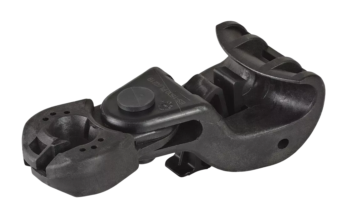 Применяется для крепления провода марки СИП на промежуточных опорах. Отличительная особенность - это шарнирное разъемное кольцо подвеса. Возможно применение на угловых опорах при углах до 30°.