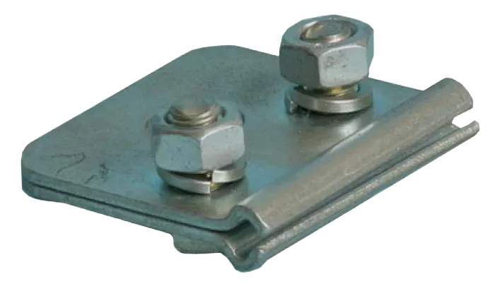 Состоит из 2-х одинаковых плашек с тремя отверстиями (два отверстия для крепления ОК, одно- для подвески к узлу крепления). Зазор между плашками – 3мм. Комплектуется двумя болтами, гайками и шайбами.