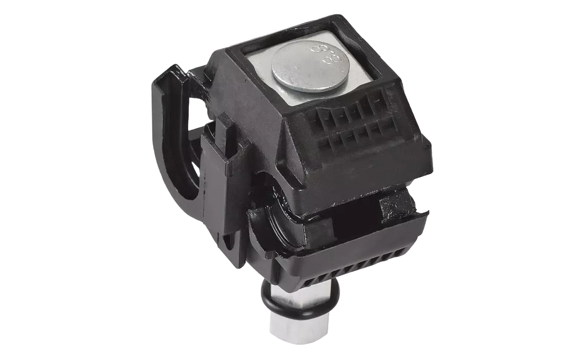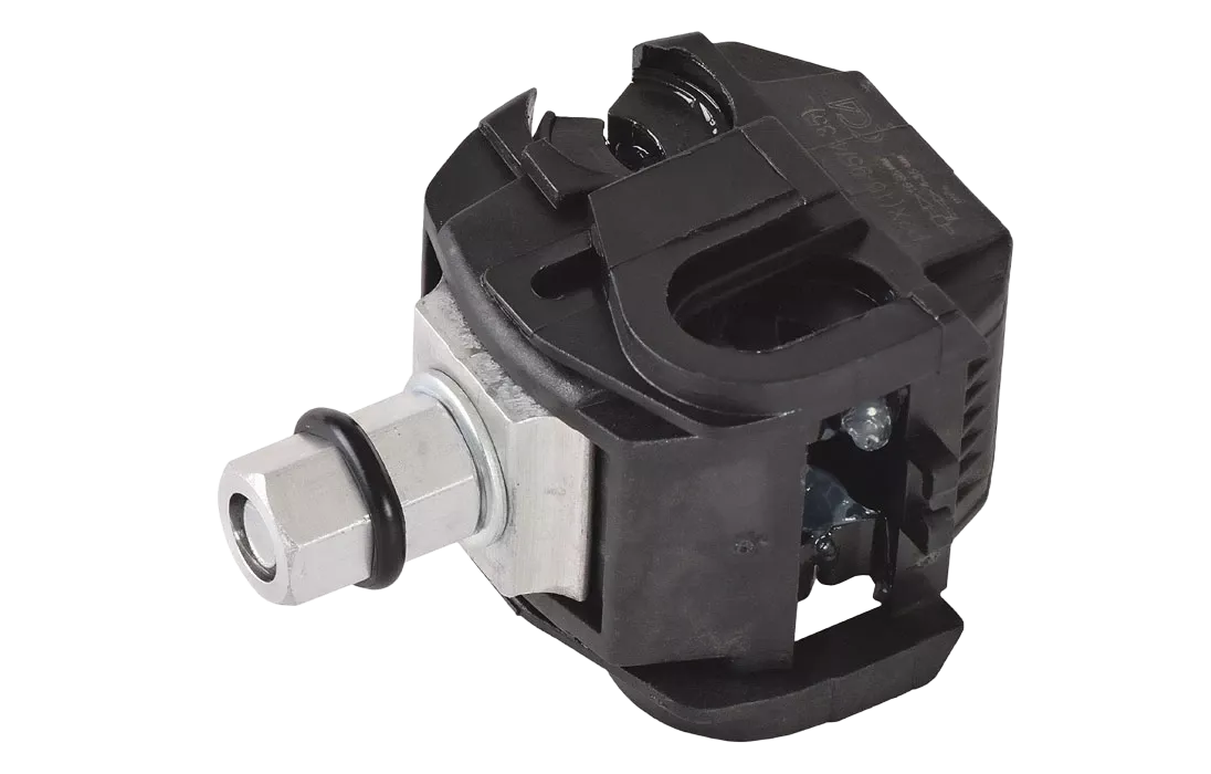 Предназначен для подключения ответвляющихся линий к магистральной. Посредством прокола соединяются два провода без удаления изоляционного слоя. Чтобы предупредить окисление в месте прокола внутри есть специальная смазка, а контакт обеспечивается пластинами с пирамидальными зубьями и калиброванной головкой срывного типа. Зажимы оснащены второй головкой для демонтажа, оставаясь при этом продуктом одноразового монтажа. Посредством их замены можно безопасно соединить провода или необходимые элементы цепи. Качественный зажим для СИП кабеля является гарантией максимально быстрого и безопасного монтажа. Отличительной особенностью продукта является высокое качество материалов изготовления. Сечение соединяемых изолированных проводников 16-95 мм² с 4-35 мм².